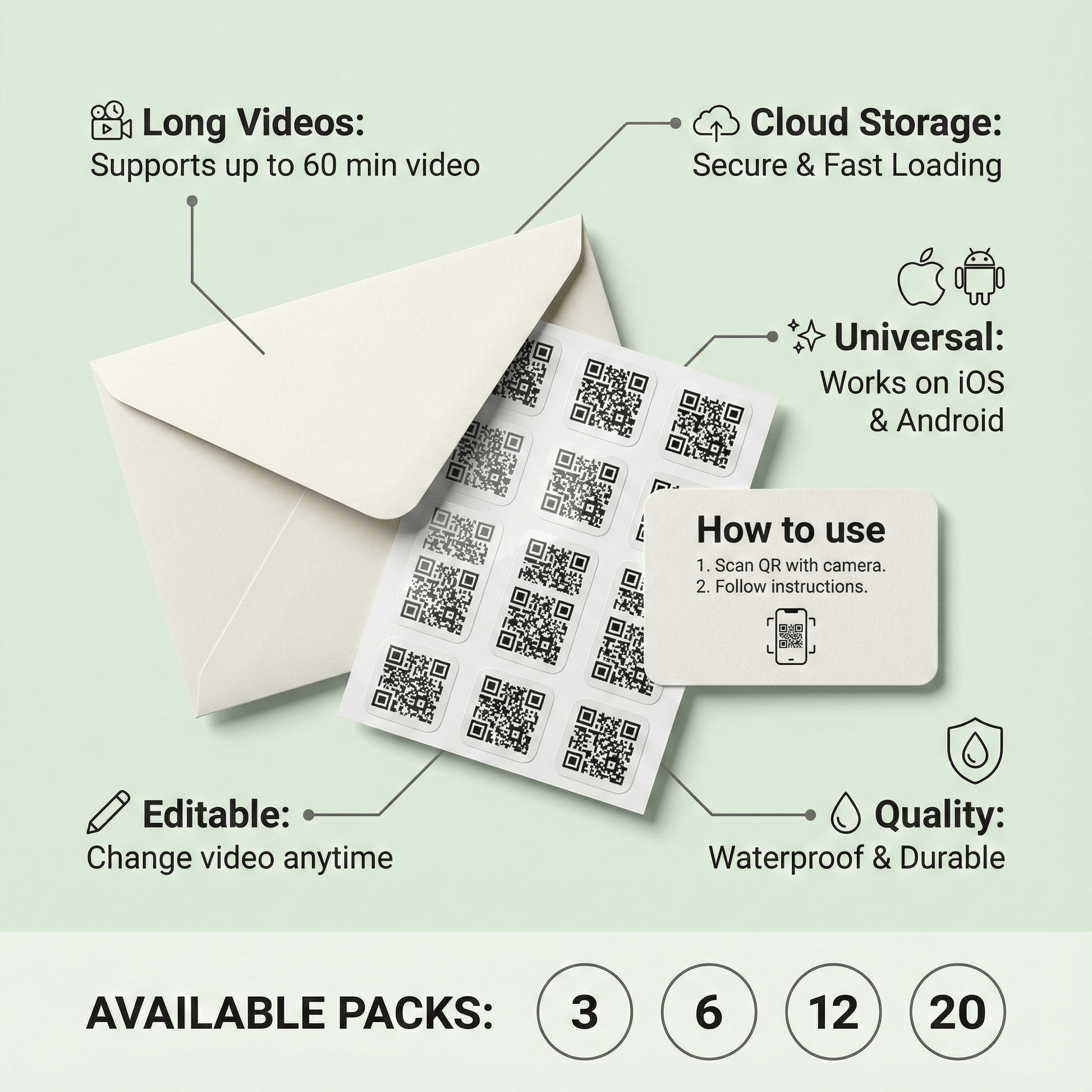 This DIY Mix Pack allows you to add unique video content to physical objects. Each sticker in this pack works independently. This means you can record a specific birthday message for Mom, a romantic video for your partner, and a funny clip for a friend — all from the same pack.