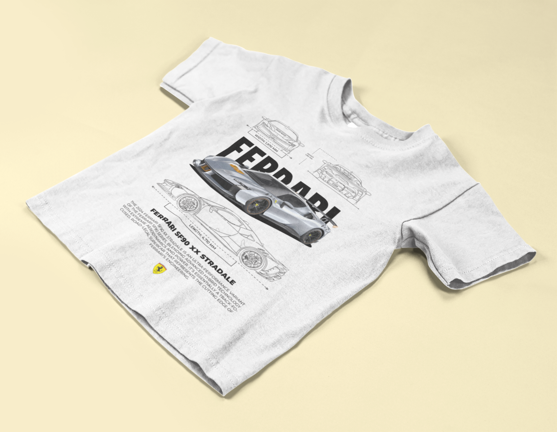 Premium 100% cotton graphic tee inspired by the Ferrari SF90 XX Stradale. Unisex fit and long-lasting DTG print. Choose print placement (front or back), multiple colors and sizes.