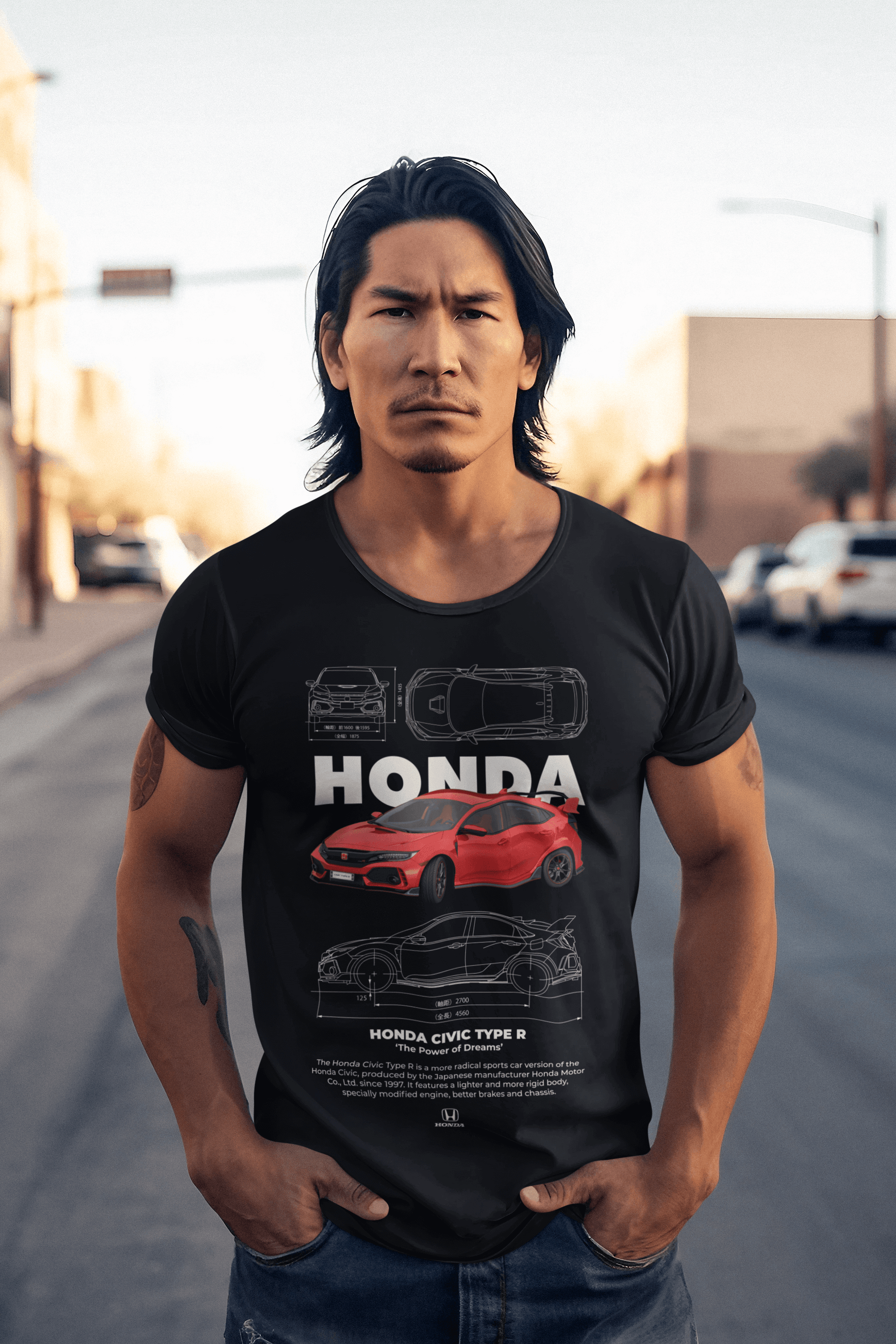 Premium 100% cotton graphic tee inspired by the Honda Civic Type R. Unisex fit and long-lasting DTG print. Choose print placement (front or back), multiple colors and sizes.